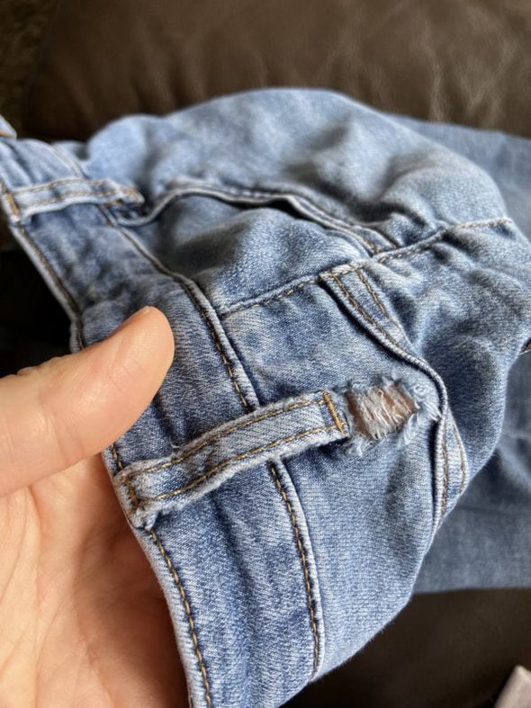 One of her pairs of jeans got a belt loop hole (we have all been there, right??), so I did my usual method of reinforcing it from behind.