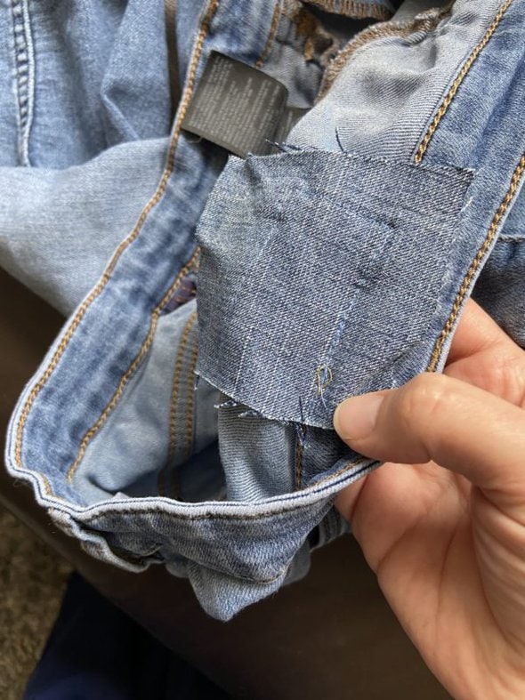 I still need to sew down those frayed parts a bit, and secure the belt loop better, and then I’ll be done with this fix.