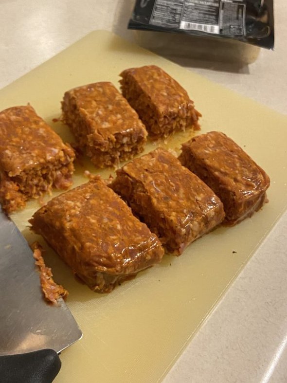 Because I wasn’t going to eat the whole package before the expiration date, I divided it into little one-ounce rectangles and froze them so that it’s easy to grab one out if I want some chorizo with my scrambled eggs.