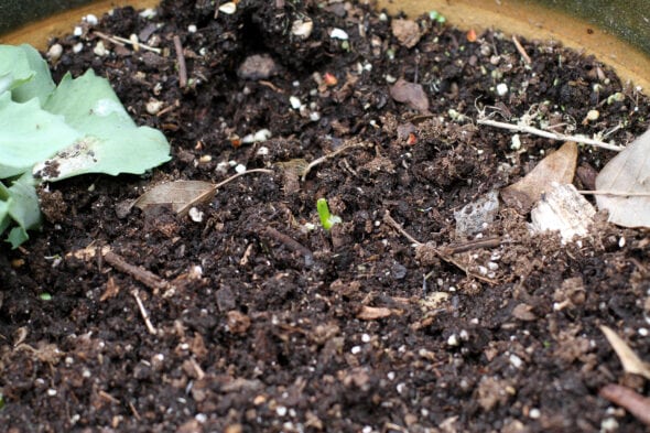 But it’s pretty warm outside now, so I stuck two onion ends into a pot.