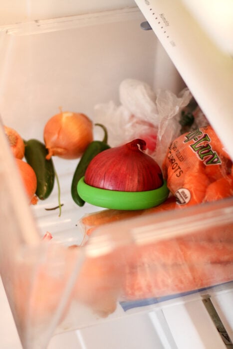 (The silicone cover on the red onion half is from a Food Huggers set that I got in my Mighty Fix. They’re really awesome for when you have half an item of produce to store, like an onion or a lime.)