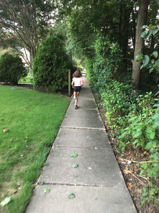 Well, she scooters and I walk.   So, one of us is working a lot harder while also going a lot slower. 😉