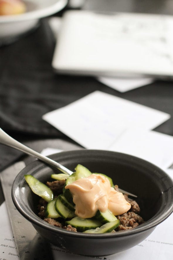 These are leftovers from the Korean lettuce wraps I make, just piled into a bowl.