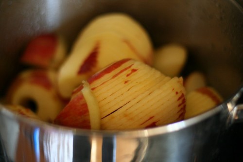 We ate a loaf of banana bread for lunch, and after lunch, I cut up a bunch of apples to make applesauce(the kids get a free apple each week at Weis, and sometimes we can’t keep up with the apply supply!).