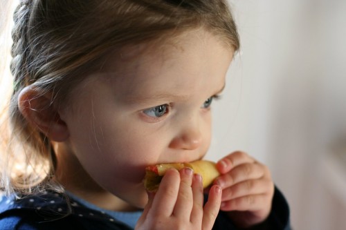 I cooked most of the apple peels and cores down and squeezed out the juice(I was experimenting with an apple jelly recipe I found online), but Zoe managed to grab a few before I did that.