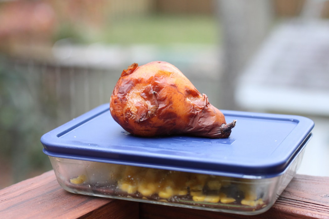 And inside the container, there’s a little bit of leftover corn. Zoe would have happily eaten this, but I forgot to feed it to her. Whoops.