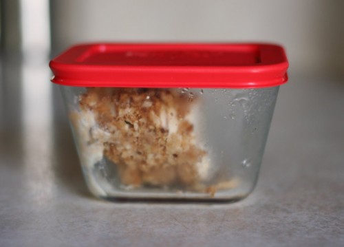 I almost had a no waste week this time around. Alas, my husband only ate part of his lunch one day, and he left the rest out of the fridge. It was a chicken dish, and I’m not interested in eating chicken that sat at room temperature for several hours. I have my limits, after all. This wasn’t exactly my fault, but I didn’t feel right about leaving it out of the picture. So, that’s my waste for this week-two slices of chicken breast.