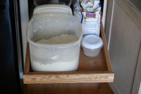 The good thing is, though, the two leaky, stinky potatoes made me clean out the cabinet they were living in. I vacuumed out all the spilled flour and wiped the shelves.