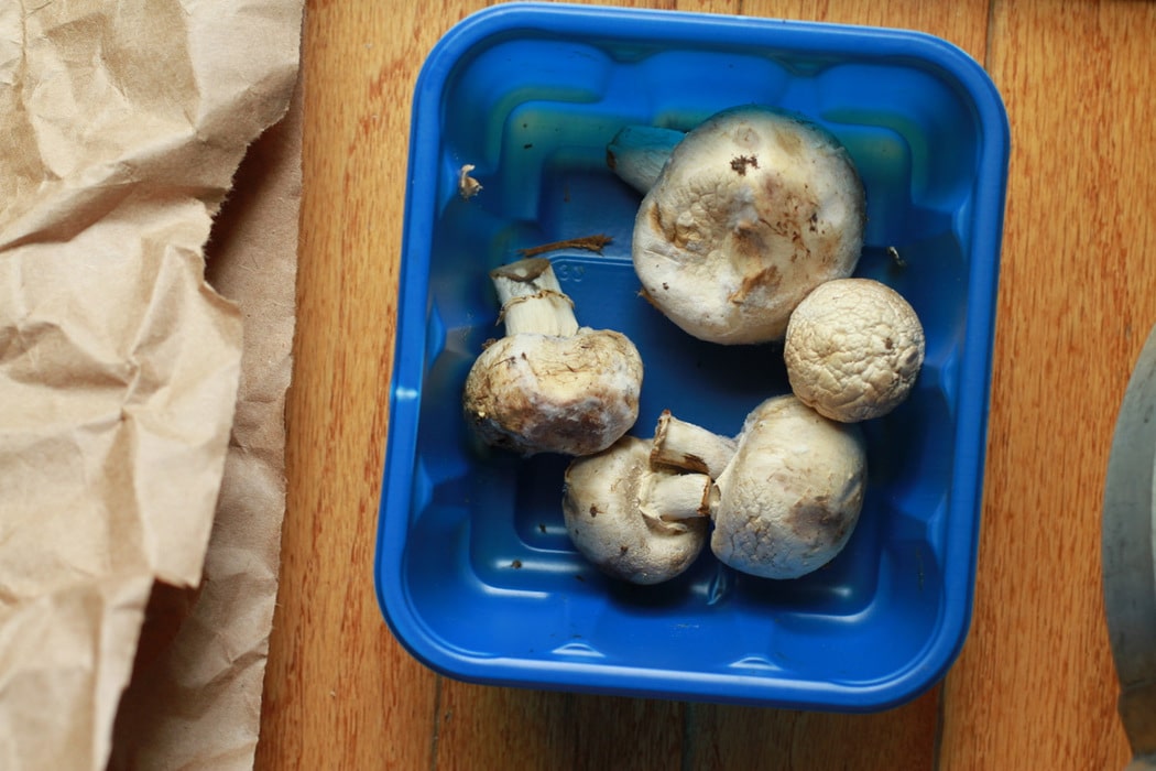 Normally I store my mushrooms in a small paper bag in the fridge and they’re fine. This time, I just didn’t manage to transfer them.