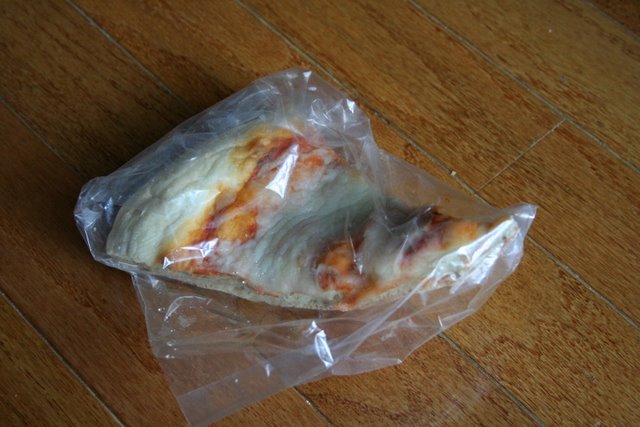 I actually wasted nothing this week. The photo belies that fact, however, so let me explain. This is a slice of pizza that I made exactly two weeks ago, which means that I should actually have thrown it away last week(when it would have joined my lone banana). So, I didn’t actually waste it this week….I wasted it last week. 😉