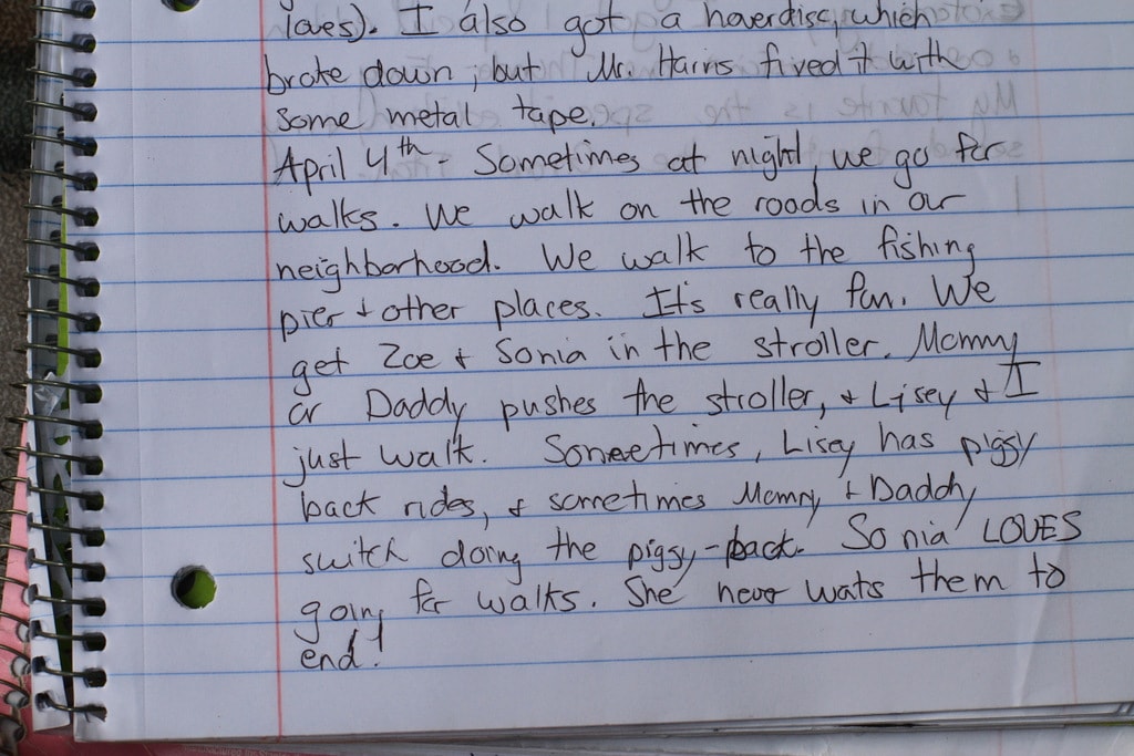 Here’s an example from Joshua’s journal, back when Zoe was a baby.