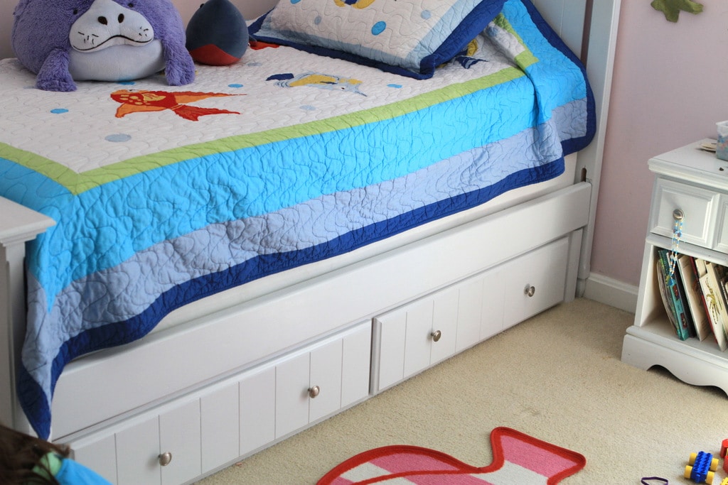 Craig’s List is also a great resource. That’s where I got this awesome wooden bed with drawers underneath it (plus a nightstand!) for $50. Schweet.