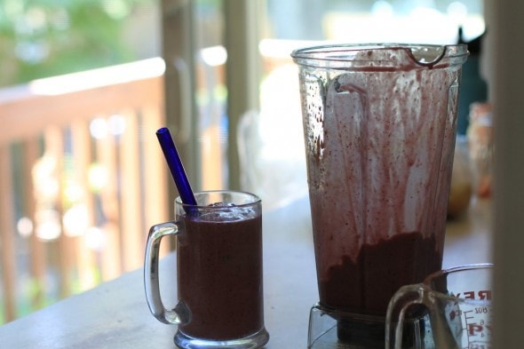 Oh! I forgot to add that blueberries or blackberries disguise the green color really well. Strawberries alone make it turn brown.