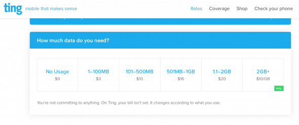 Rather, Ting keeps costs down by billing you for services in three different categories: talk, text, and data.