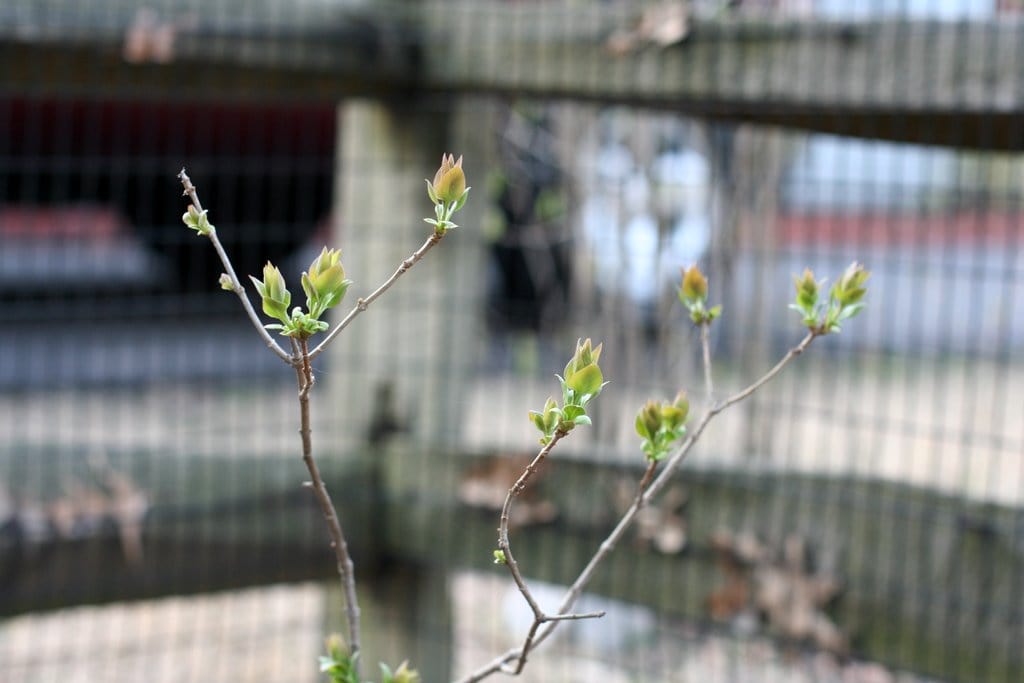 And the lilac bush (ok, it was more like a stick last summer) from the same aunt is putting forth some leaves.