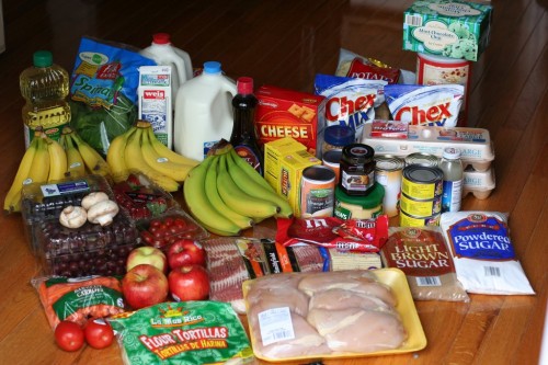 I actually shopped at three stores this week, because a local grocery store was having a very good sale on chicken breasts. I got 7 pounds of chicken breasts for $1.35/pound, which is a delightful price. I also got some bananas there for $.35/pound, and some strawberries, which were $2.35. So, all told I spent $13.70 there.