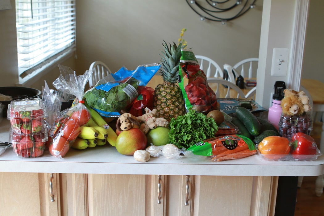 These are my pantry-ish purchases (although OJ is in there, and that’s not a pantry item. Whoops. And should canned fruit go in the produce picture? Who knows?).