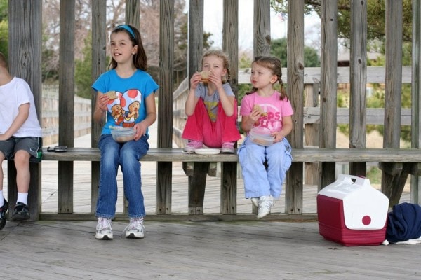 We had a picnic lunch by the water. We used to do this ON the beach, but my littlest nephew is sort of a disaster right now when food and sand are combined. Actually, the problem is that he combines food and sand.