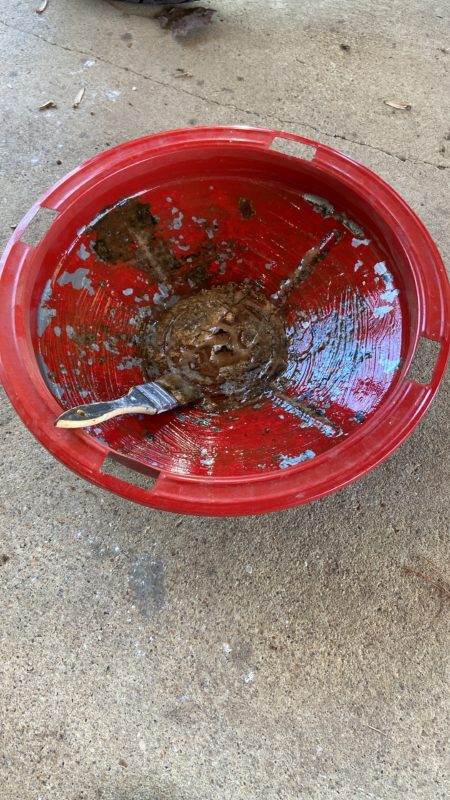 The gloss red pepper turned out to be too orange of a color, so I went with the farm implement can. I figure if it’s tough enough for farm implements, it will probably be fine for a tree stand. 😉