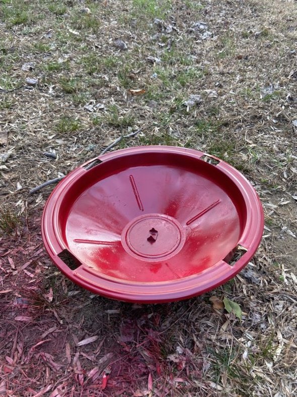 And then I grabbed two red cans of spray paint from a bin that I’d gotten on the Buy Nothing group.