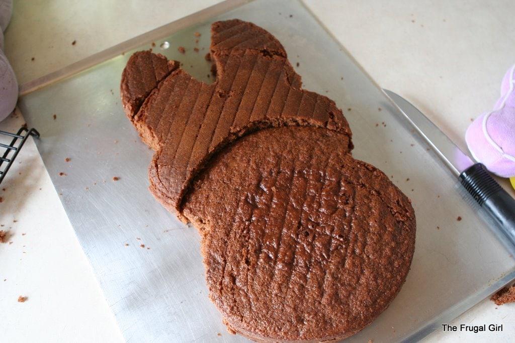 I don’t have a special cake pan for this…I double my chocolate cake recipe (I just updated that page today to include a printable PDF. You’re welcome. 😉 ) to make two round 9-inch cakes.