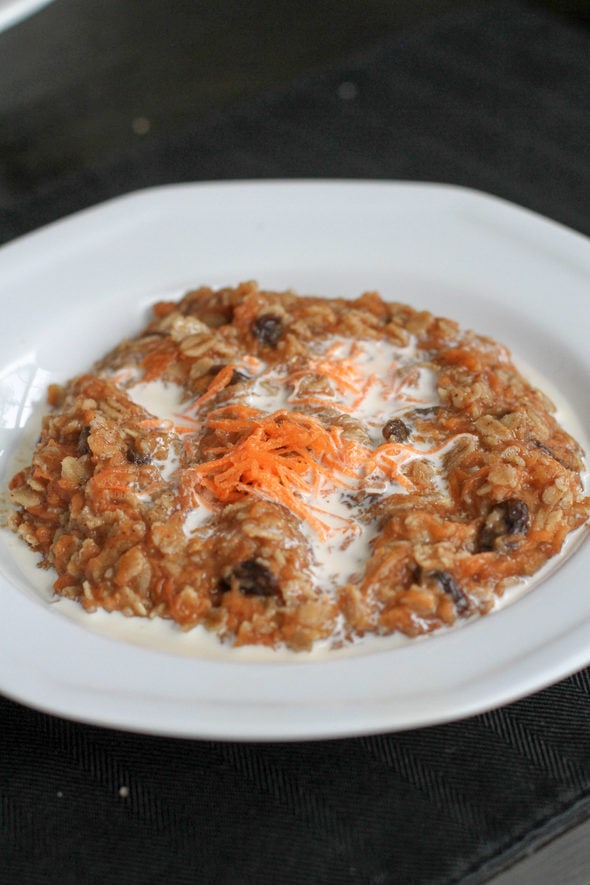 This obviously does not taste quite like carrot cake. But it is a pretty delicious way to get a vegetable into a meal that is not typically vegetable-heavy.