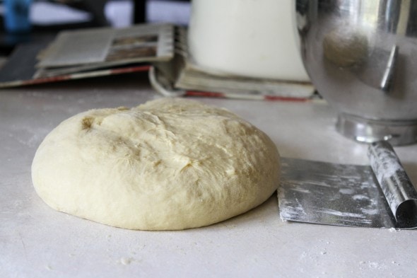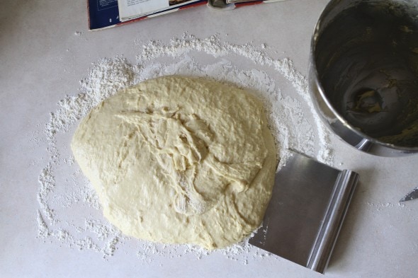 Turn the dough out onto a floured surface, and knead for 2-3 minutes (alternatively, you can finish kneading in the mixer.)
