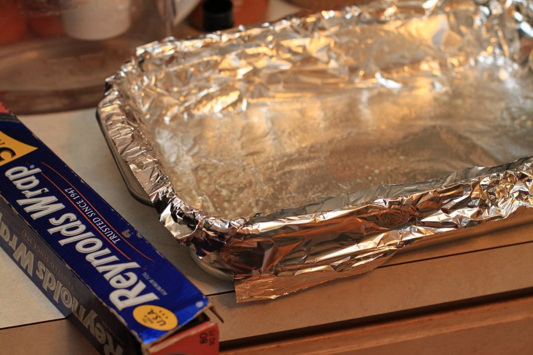Before you get started with the actual cooking, you’ll need to line a 9×13 inch pan with aluminum foil. Use two pieces, running them in opposite directions, and pushing the foil down in the corners to make a neat lining. Then spray the foil with cooking spray. This will make it simple for you to remove the marshmallows from the pan.