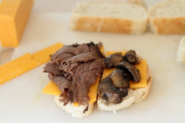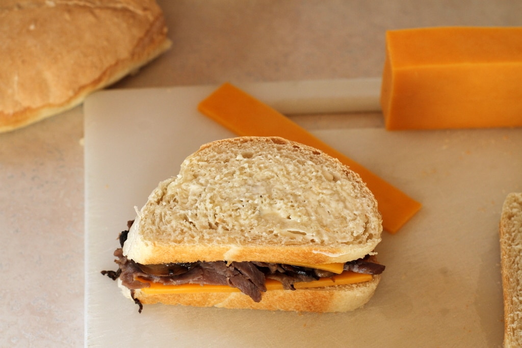I lay my bread slices out and put sliced cheese on each piece of bread. You could put cheese on only one side but I find that having it on both sides helps the sandwich to stay together a little better.
