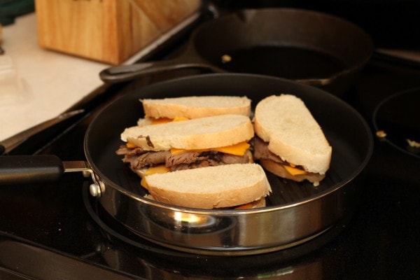 Anyway, while I’m prepping the sandwiches, I put both pans on the stove over medium heat.