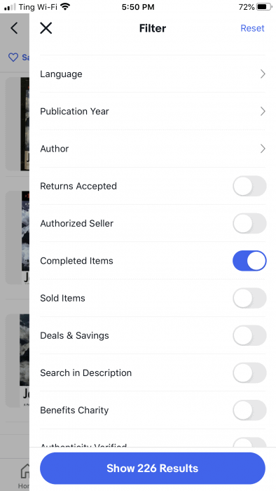 (On mobile, click on “Filter” on the right hand top side and scroll down to toggle on “completed listings”.)
