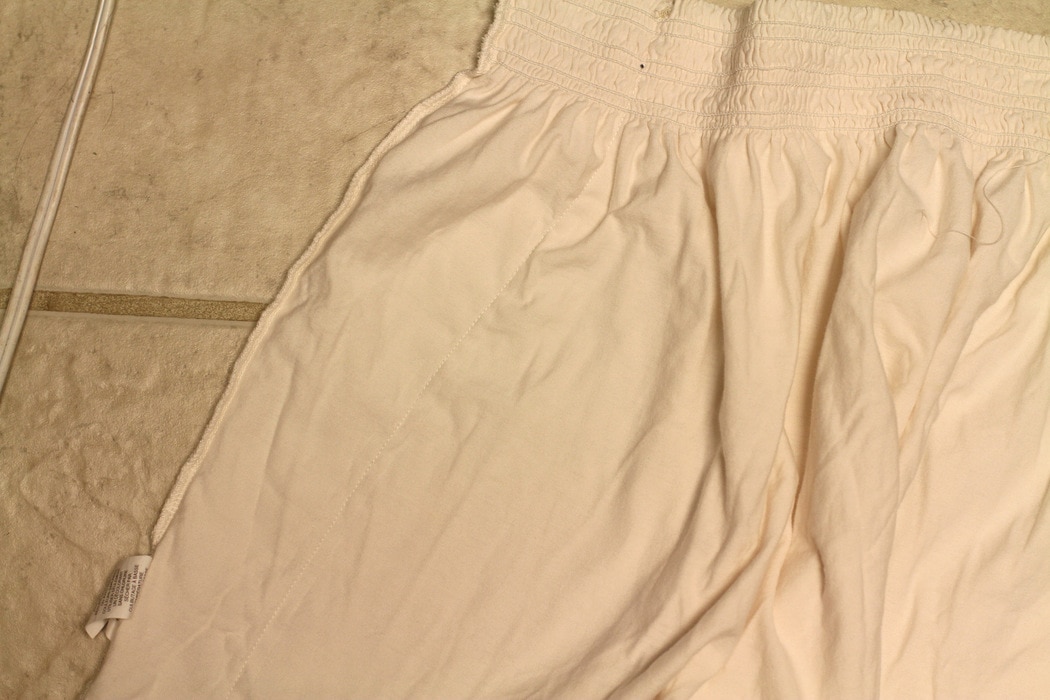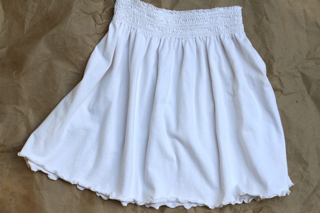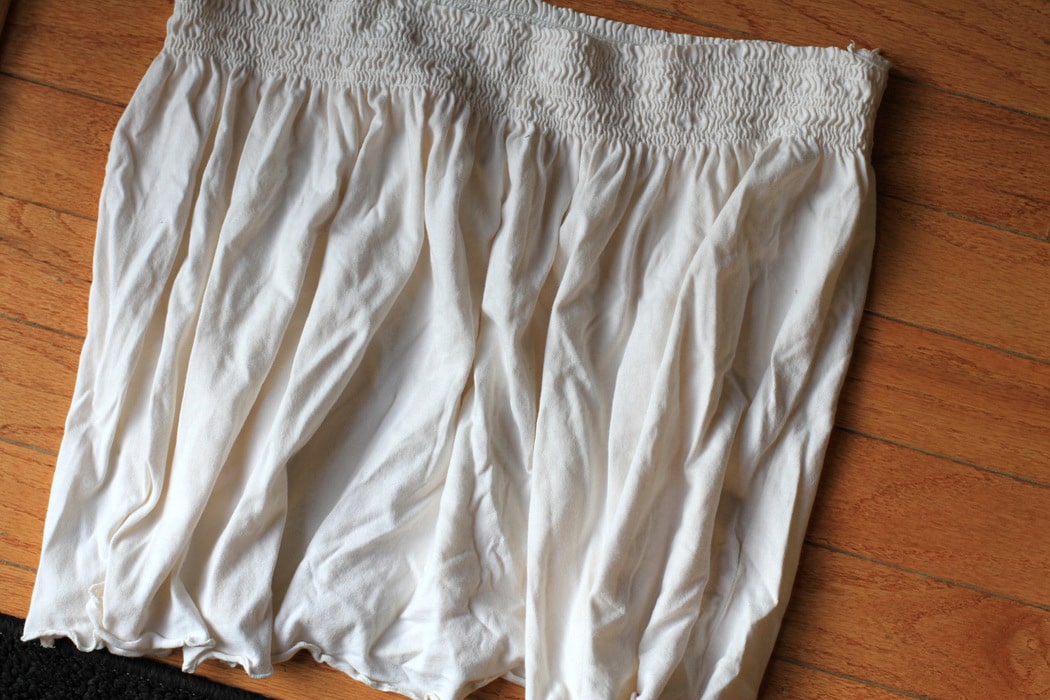 After cutting all the way around the bodice, I ended up with something in the shape a skirt, but it was waaay too wide. That’s an easy problem to fix with two new side seams, though.