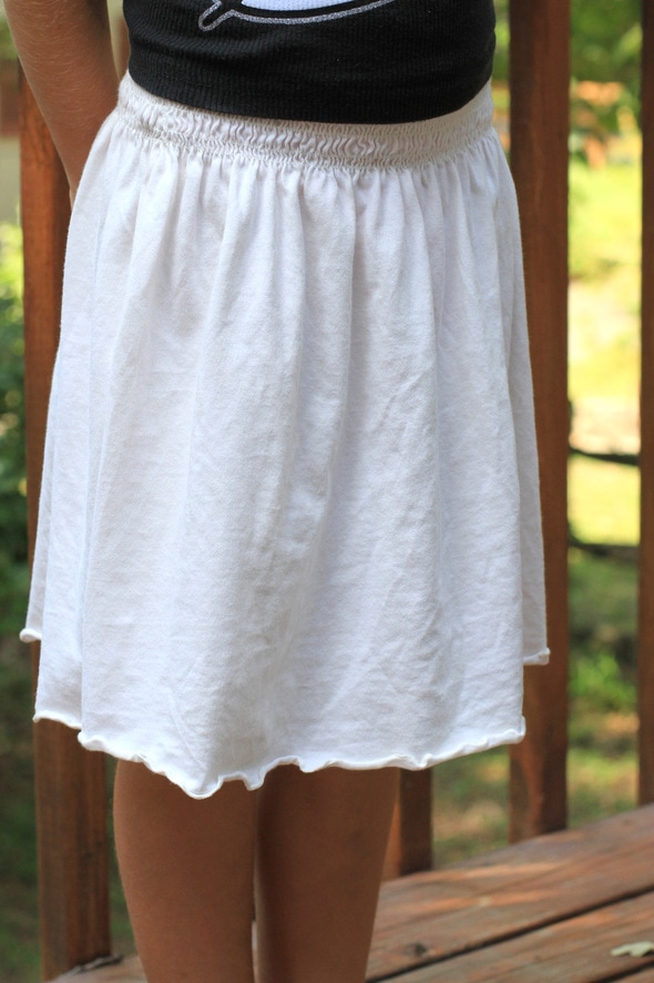 Since the shirt is made of knit fabric, it won’t fray, so there’s no need to finish the top edge. Schweet.
