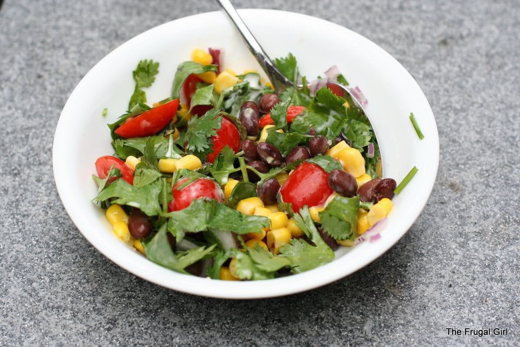 - make a salad with it. I use corn, black beans, tomatoes, and chopped cilantro with (oddly enough) ranch dressing. It’s surprisingly good.
