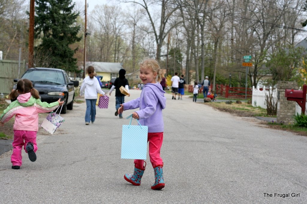 After we finish the egg hunt, we usually let our kids eat some candy, and then all the rest of the eggs go into a big bowl on our kitchen table. Our kids are allowed to choose one egg after lunch and one after dinner, which is our usual modus operandi with candy anyways.