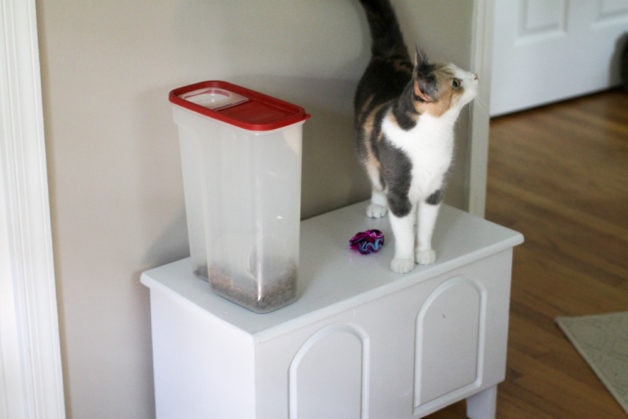 For instance, I pour Chiquita’s cat food into a smaller container so that I don’t have to deal with the enormous 50-pound bag every time I feed her.