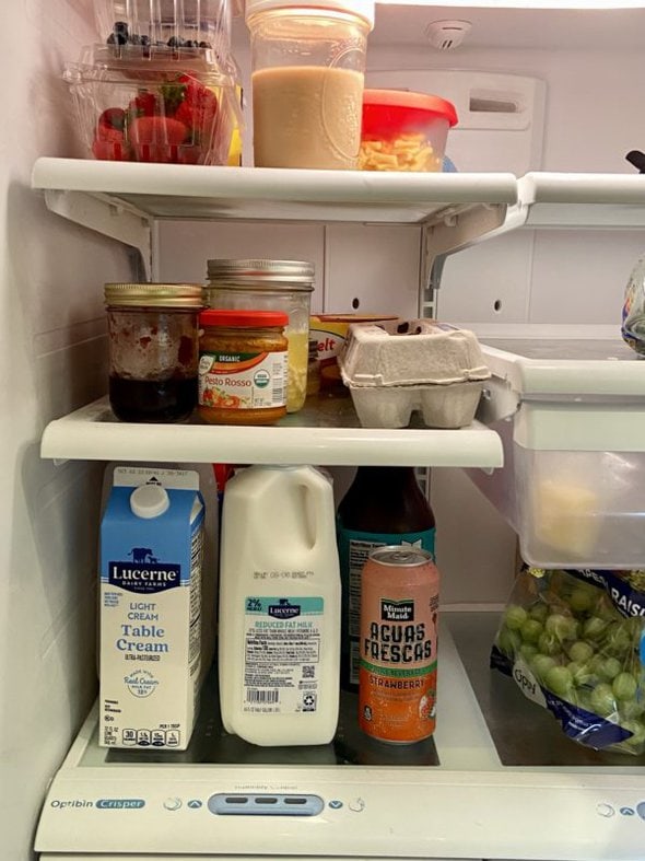 No one wants to see someone fill a fridge with things like a pitcher of tap water, a gallon of milk, a jar of mayonnaise, a jug of maple syrup, a quart of yogurt, and so on.