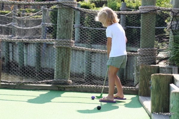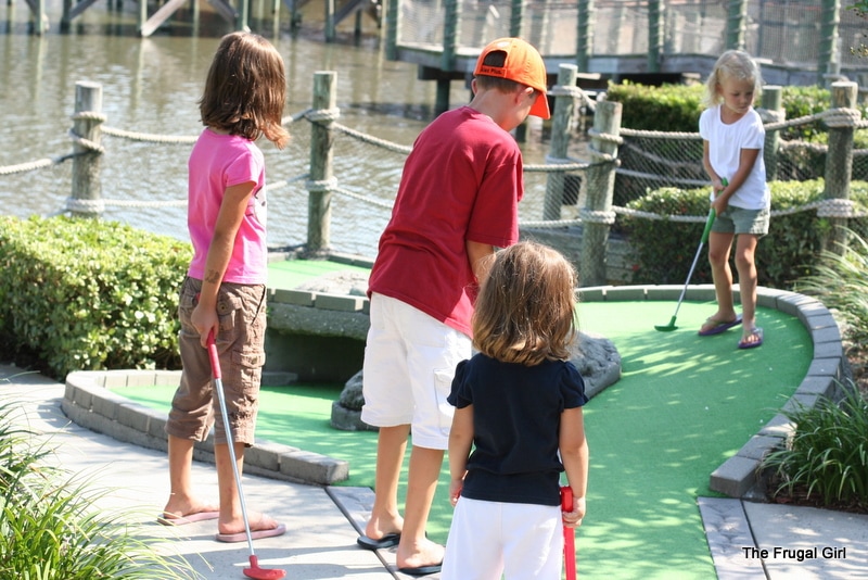 For instance, mini-golfing is much more enjoyable. Everyone can walk and hold their own clubs (no stroller!).