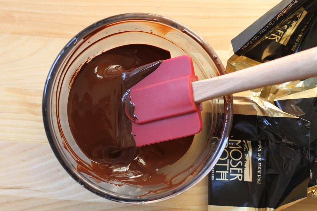 To melt the chocolate, just break it into pieces and microwave it. I did mine for 45 seconds at a time, stirring in between each zapping session.