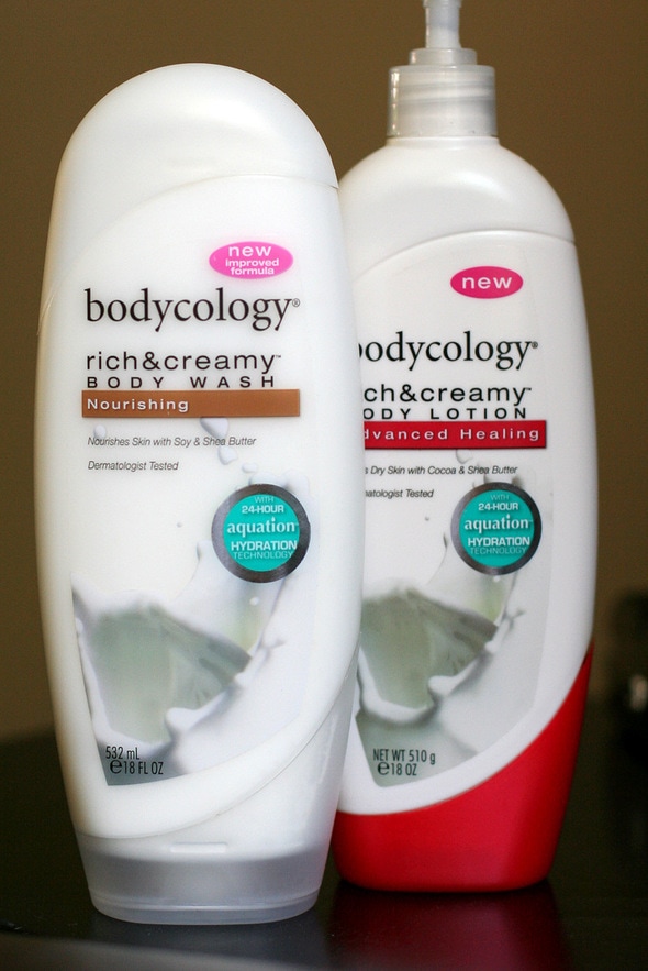 I recently got two bottles from bodycology’s new rich&creamy line…a bottle of Hydrating Lotion and a bottle of Hydrating Body Wash.