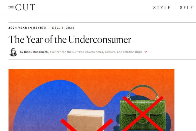 This article from The Cut discusses the year’s version of frugality; now it’s called under-consumption!