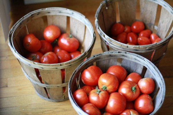 I brought home several baskets of tomatoes from my parents’ garden yesterday.