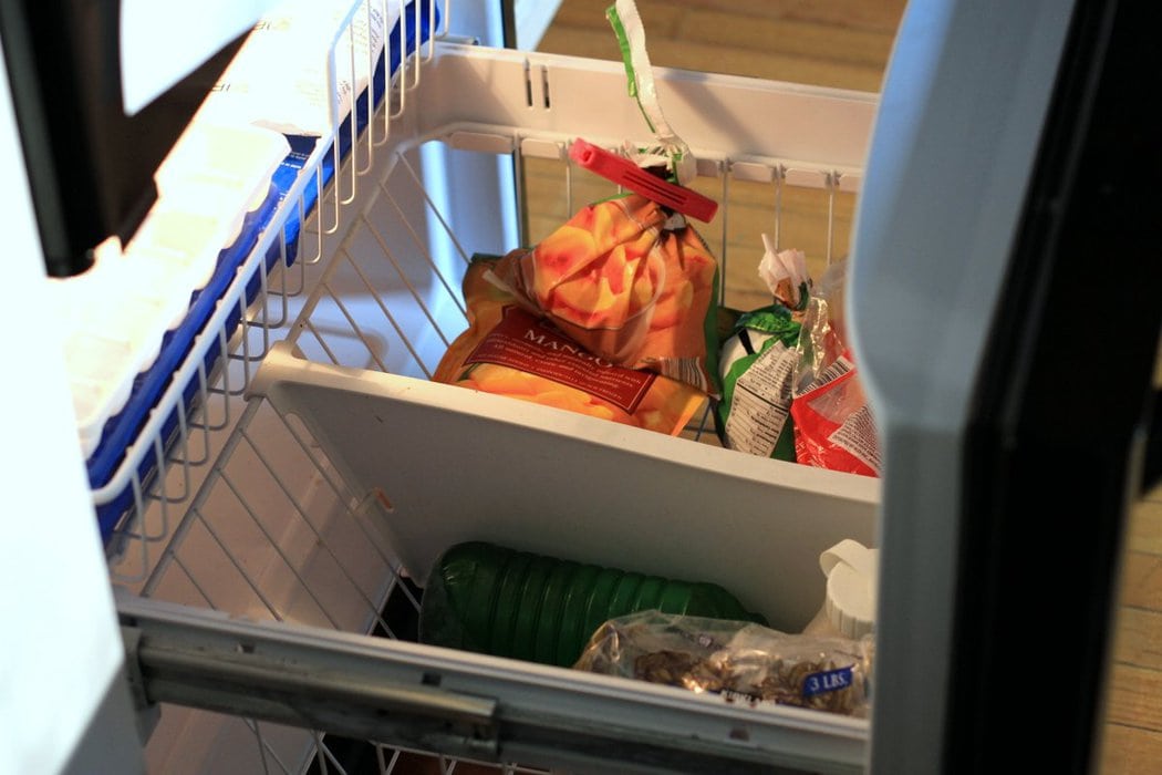 I was really diligent about sorting through the contents and I made a point of using up what was in there. Now it mostly houses ice, ice packs, fruit for smoothies, some OJ concentrate, and a few items for Monday’s main dish. That’s a big improvement for me!