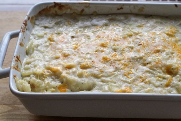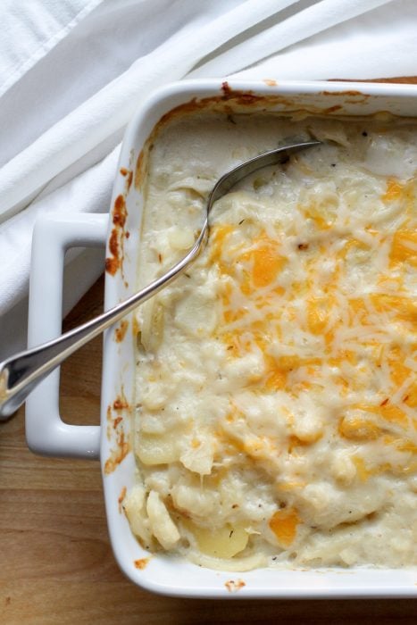 If you want to make the potatoes ahead of time, cool and refrigerate them after you transfer the potatoes to the 9×13 inch dish, and then bake them when you’re ready to serve. Just keep in mind that you’ll need to allow about twice the amount of baking time since the potatoes will be starting out cold.
