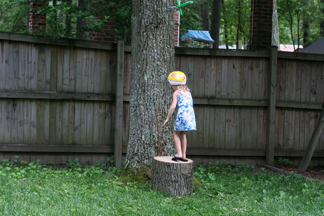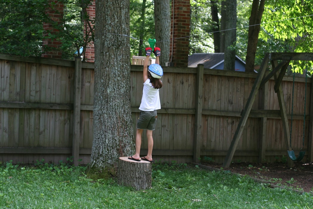 There’s such a disparity in height between the tallest zip line rider and the shortest, we had to err on the tall side when we installed it. This meant that Sonia and Zoe needed help getting off of the line.