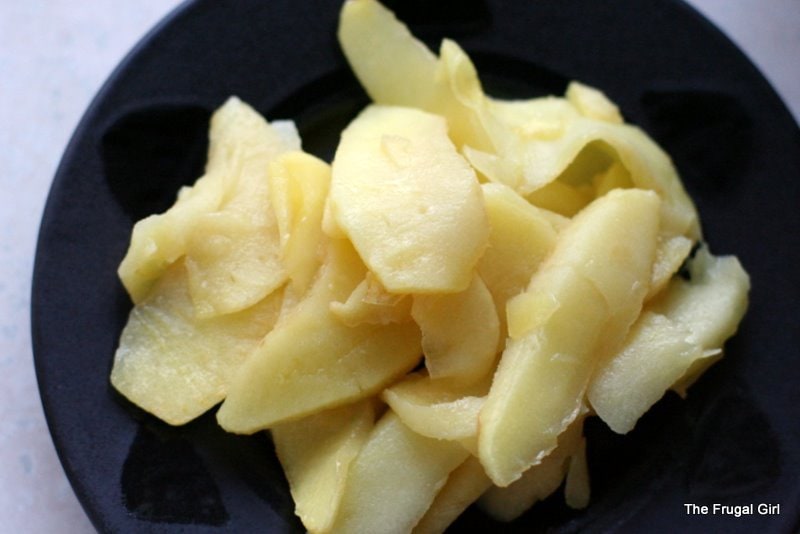 - I used up a few apple slices that were left from dinner earlier in the week by sauteing them in a little bit of butter for about 10 minutes. They were really tasty…sort of like eating applesauce with a fork. (I do often make applesauce with leftover apples, but there were so few this time, it didn’t seem worth the effort).