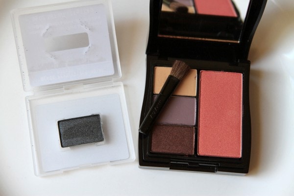 This is a pretty sweet Mini Compact for eyeshadow and cheek color. The mineral colors are all in magnetized, metal containers that stick to the bottom of the compact.