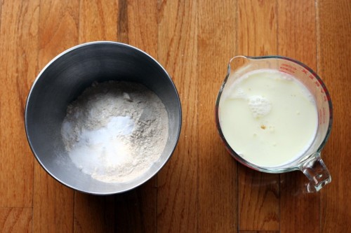 To make these, mix the dry ingredients (except for the brown sugar) in a bowl with a whisk, and, using a whisk or an egg beater, mix the brown sugar, buttermilk, oil, and egg in another bowl.
