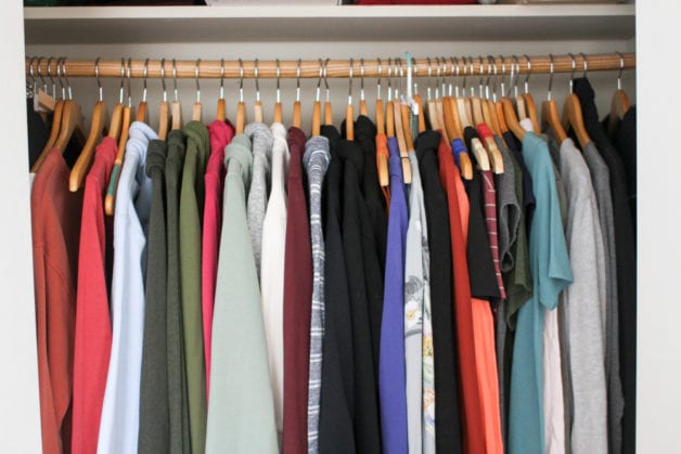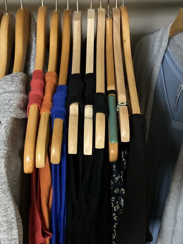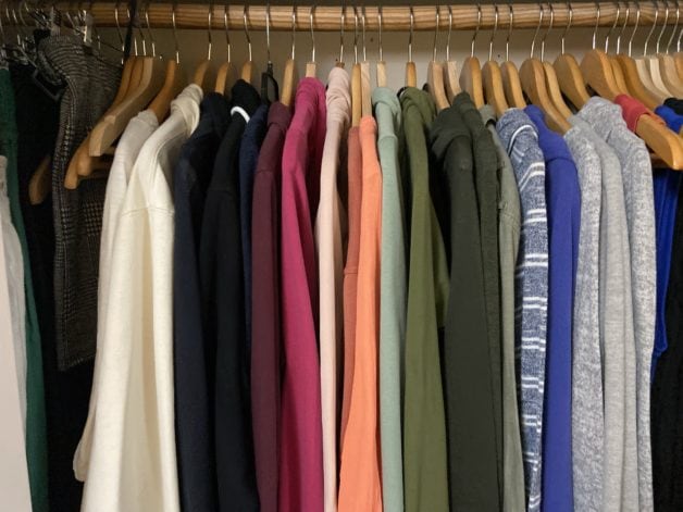 Well, the other day when I was decluttering my clothes, I put everything in ROYGBIV order.