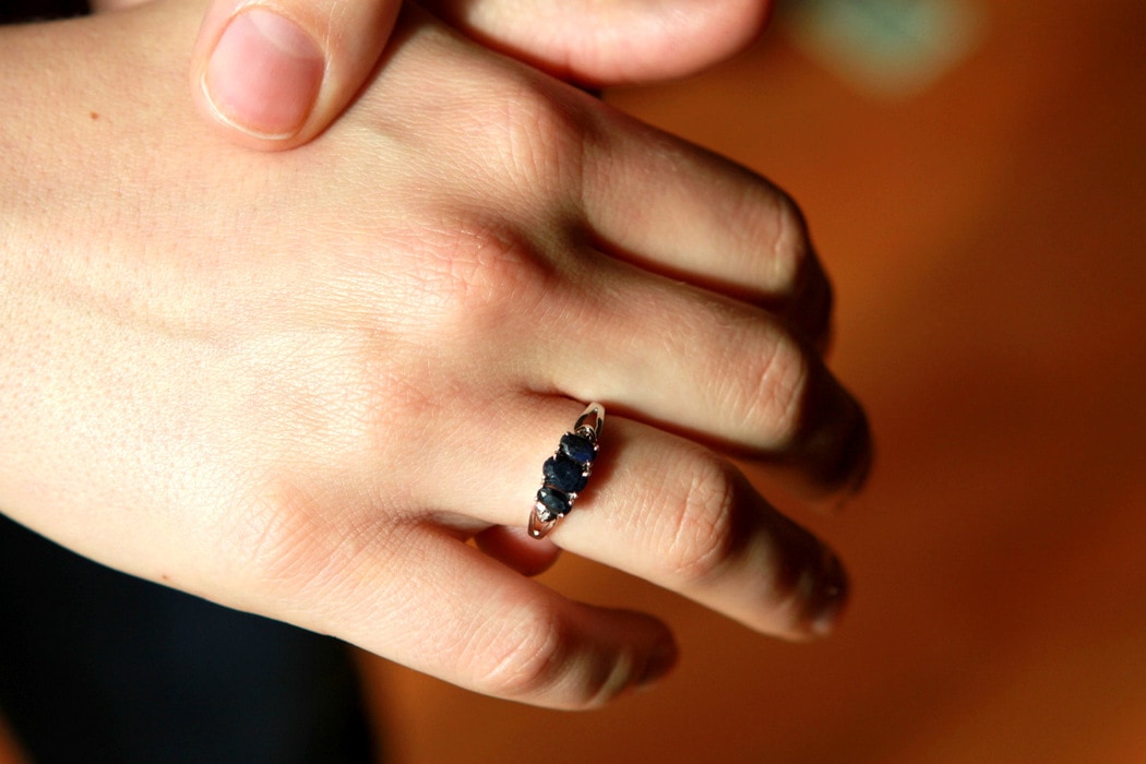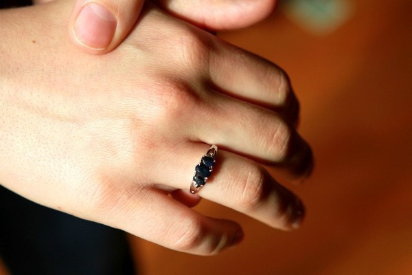 I’ve always loved sapphires, and he did buy me a sapphire ring back when Joshua was a baby. But one of the sapphires fell out, and it was a yellow gold ring, and I don’t wear a lot of yellow gold these days. So, now I have a lovely silver sapphire ring and I love it!